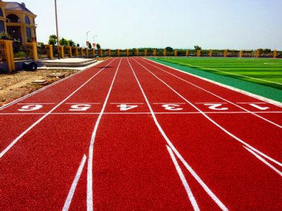 塑料跑道又稱全天候田徑運動跑道,由聚氨預聚體、混合聚醚、廢輪胎橡膠、EPDM橡膠粒或硅PU顆粒、顏料、助劑、填料組成。塑膠跑道具有平整度好、抗壓強度高、硬度彈性適當、物理性能穩定的特性,有利于運動員速度和技術的發揮,有效地提高運動成績,降低摔傷率。塑膠跑道是由聚氨酯橡膠等材料組成的,具有一定的彈性和色彩,具有一定的抗紫外線能力和耐老化力,是全天候室外運動場地坪材料。