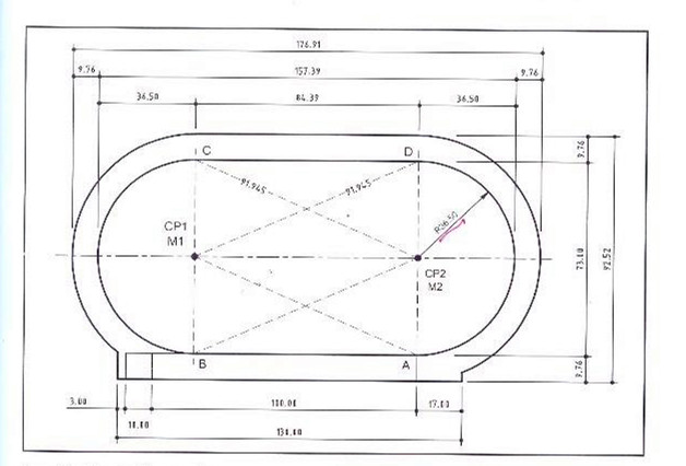 標準的塑膠跑道一般指的是400田徑塑膠跑道,跑道半徑設計為36米,一共八條道,