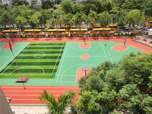 汕頭市金平區(qū)金園實(shí)驗(yàn)中學(xué)全塑型跑道、人造草足球場、籃球場及安裝新球架順利完工